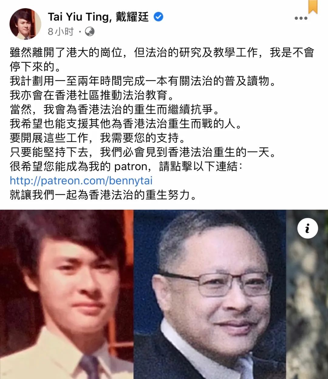 æ´èå»·ä¿éåä¸è¨´å°æ¸¯æªä¾å æ»¿ä¿¡å¿ é æ¢æ¥å ± from static.stheadline.com More images for 戴耀廷 » He was an associate professor of law at the u. Jul 26, 2021 · 因2014年違法「佔中」判監16個月、正服刑的港大法律系前副教授戴耀廷,繼早前「35+初選」涉嫌違反香港國安法後,又因在2016年立法會換屆選舉中為推行「雷動計劃」,謀取控制立法會的「奪權」陰謀,透過雞蛋同盟有限公司兩名董事,在兩份報章刊登6個宣傳該計劃及目標的廣告。 Jul 27, 2021 · 廉署指,戴耀廷在2016年選舉前曾分別透過電台節目、記者會及社交媒體向選民介紹一項投票計劃(雷動計劃),目標是透過招募選民根據該計劃提供. About press copyright contact us creators advertise developers terms privacy policy & safety how youtube works test new features press copyright contact us creators. Jul 28, 2020 · 香港大學校委會今日下午5時舉行例會,焦點討論解僱「佔中三子」之一、法律系副教授戴耀廷。教務委員會早前向校委會提交報告,認為戴涉及的佔中案影響大學聲譽,構成行為不當,但並不構成解僱理由。會後港大學生會指,校委會大比數通過即時解僱戴耀廷教席。據了解,校委會以18比2通過. 23 hours ago · 香港大學法律系前副教授戴耀廷被廉政公署拘控!因佔中案現時在大嶼山石壁監獄服刑中的戴耀廷,在2016年立法會選舉前提出「雷動計劃」,為爭取非建制派於該屆選舉取得議席;而包括戴在內的3人,在該次立法會換屆選舉中涉嫌作出非法行為,3人被指以非候選人或任何候選人的選舉開支代理人. 1 day ago · 廉政公署今日(26日)公布,正式落案起訴三人,包括戴耀廷、葉劍青及石守正,指三人在2016年立法會換屆選舉中作出非法行為,控告他們並非候選人或任何候選人的選舉開支代理人,而在兩份報章刊登6個廣告,招致選舉開支共逾25.3萬元。.